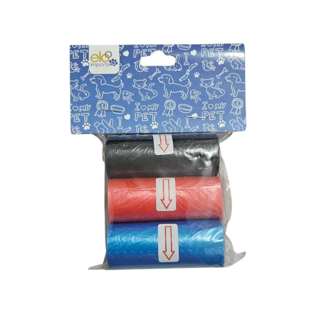 Saco Coletor de Fezes para Cães – 3 Refis – Cores Sortidas
